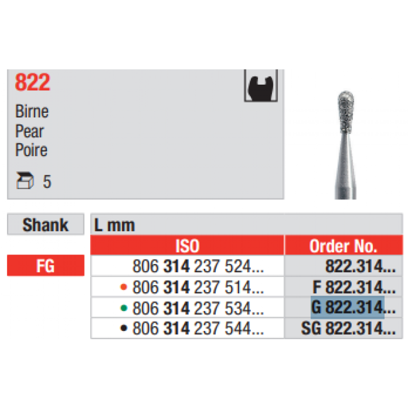 Fraise diamantée en forme de poire pour taille de cavité à gros grain (vert).