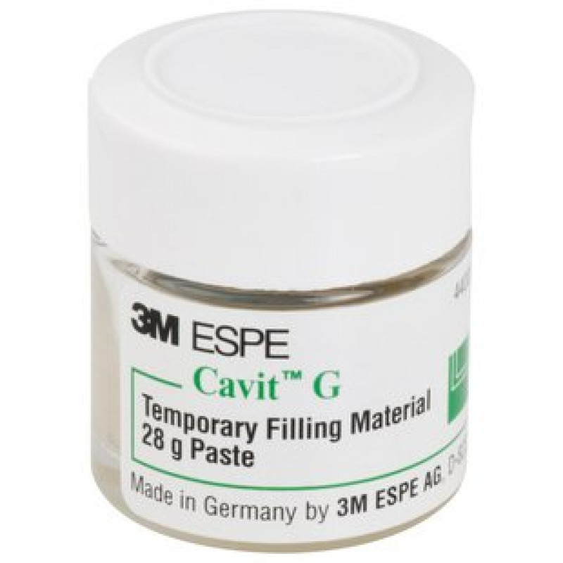 Ciment d'obturation provisoire. Ces dernières années, Cavit™ a été adapté aux besoins cliniques des praticiens tout en gardant sa composition d’origine. - Matériau d’obturation ayant fait ses preuves pour les obturations provisoires - Simple à appliquer avec un instrument d’obturation - Durcissement rapide et sans vide dans un environnement humide. INDICATIONS: - Cavit™ (rose) (importante dureté de surface): Obturation provisoire de restaurations occlusales - Cavit™-W (blanc) (dureté finale réduite, adhésion augmentée): Obturation provisoire après traitement endodontique - Cavit™-G (gris) (se dépose sans fraise) : Obturation provisoire de préparation d’inlay.