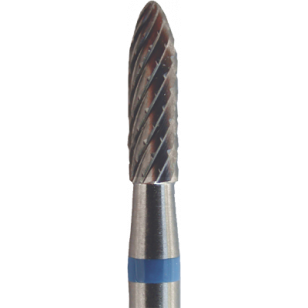 Fraise en carbure de tungstène de forme cylindro-conique fine à denture à facettes standard.