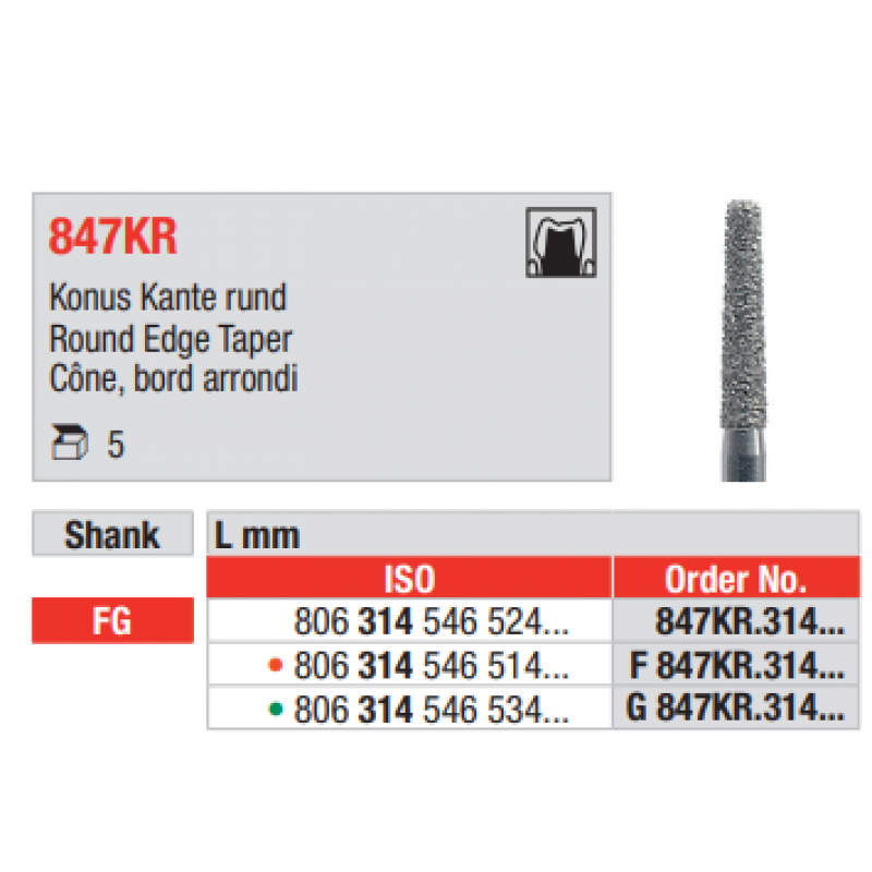 Fraise diamantée en forme conique à bout arrondie pour taile de cavité. L’assortiment d’instruments diamantés d’Edenta vous offre des instruments universels pour de multiples utilisations – de la préparation de cavités, de moignons dentaires, de facettes jusqu’au traitement en Parodontologie. Le diamantage multi-couches d’Edenta pour une durée de vie élevée des instruments va aussi vous convaincre. Tout comme les instruments spécialement diamantés avec un revêtement de haute qualité – pour un travail sans échauffement et une performance de coupe très élevée. Qualité de fabrication suisse.