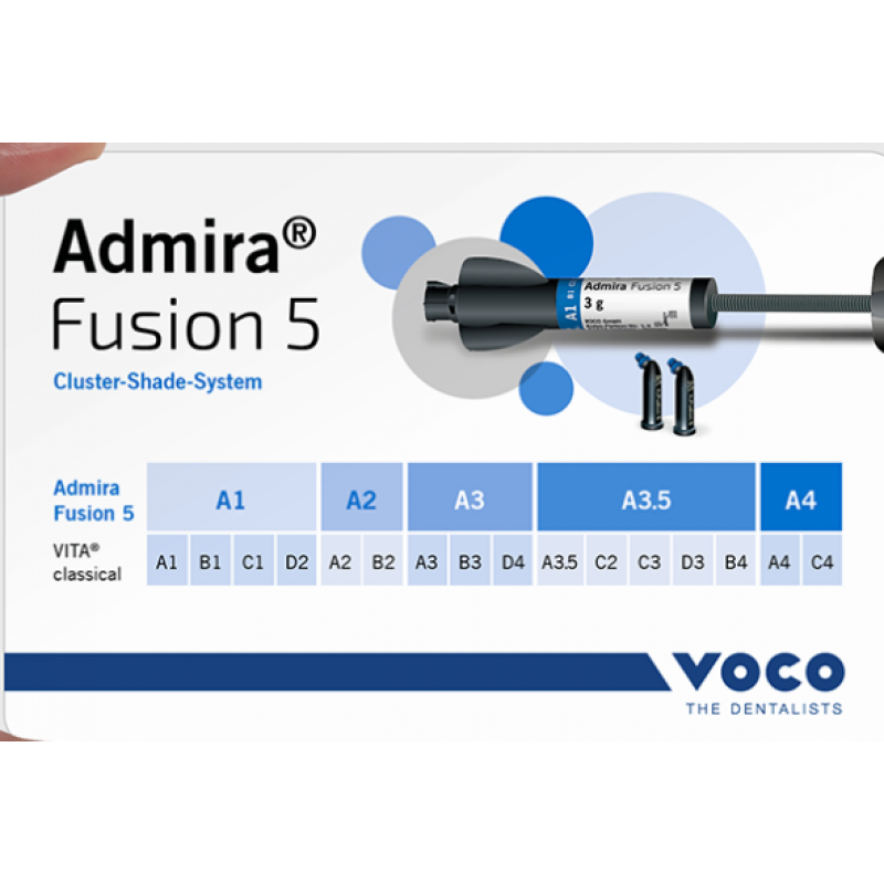 Avantages • Système de teintes simplifié– toutes les 16 nuances du teintier VITA® classical peuvent être couvertes avec seulement 5 teintes cluster – une stratification de plusieurs teintes et l’utilisation d’un opaqueur ne sont plus nécessaires – désencombrement considérable de vos tiroirs– La nouvelle matrice de résine optimise la dispersion de la lumière et permet ainsi un mimétisme ciblé et renforcé • Universel utilisation universelle – répond aux exigences les plus élevées dans les secteurs antérieur et postérieur • Manipulation simple et rapide– temps de polymérisation de 10 secondes seulement pour toutes les teintes– très bon modelage, ne colle pas à l’instrument– compatible avec tous les adhésifs conventionnels (matériaux verre ionomère) Matériaux d’obturation •Technologie ORMOCER® novatrice– matériau à base purement céramique, les charges et la matrice de résine sont à base d’oxyde de silicium– matériau hautement biocompatible, ne contenant aucun monomère classique (pas de Bis-GMA [BPA], TEGDMA, UDMA etc.)– matériau très stable et une rétraction à la polymérisation très faible (1,25 % en volume); un stress de rétraction extrêmement faible par rapport à tous les composites d’obturation conventionnels