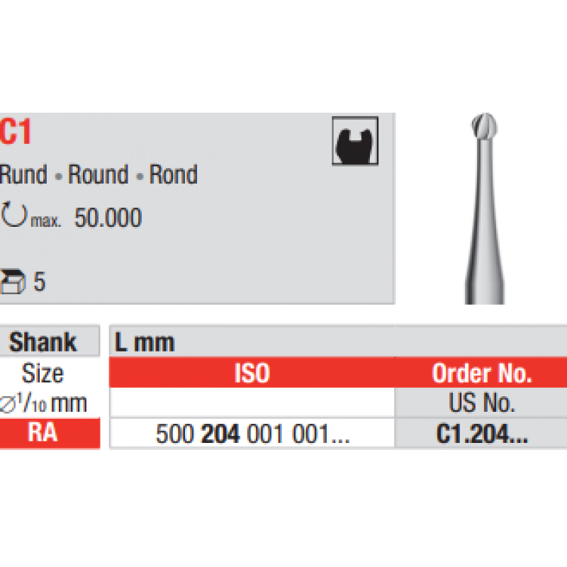 Fraise boule pour excavation de la dentine. Instruments en carbure pour des résultats de préparation très précis
